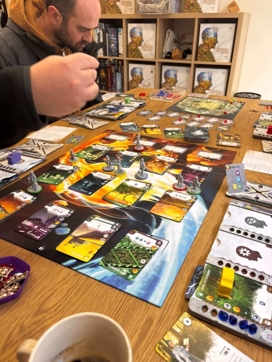 Mind Boards & Event Cards: Manage your resources and event cards. Use time tokens and adrenaline pills wisely.
