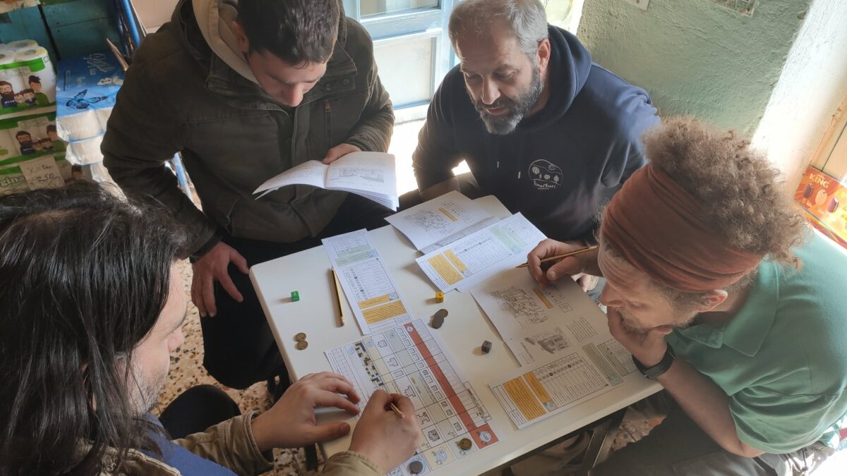 Preparations were made, and we were all able to gather at the actual starting point of the Salt Road, the so-called Tsouni Inn. About a hundred years ago, it was a place where people traveled to find merchants and carriers to buy or transfer goods. It was a place filled with merchants, wanderers, pilgrims, villagers, and all kinds of travelers. There, they all had the chance to find what they needed: some looking for assistance, and some looking to assist for a price. It was there that we also had the chance to playtest the alpha version of the game inside the old store that still exists today. I tell you, it was an unbelievable experience.